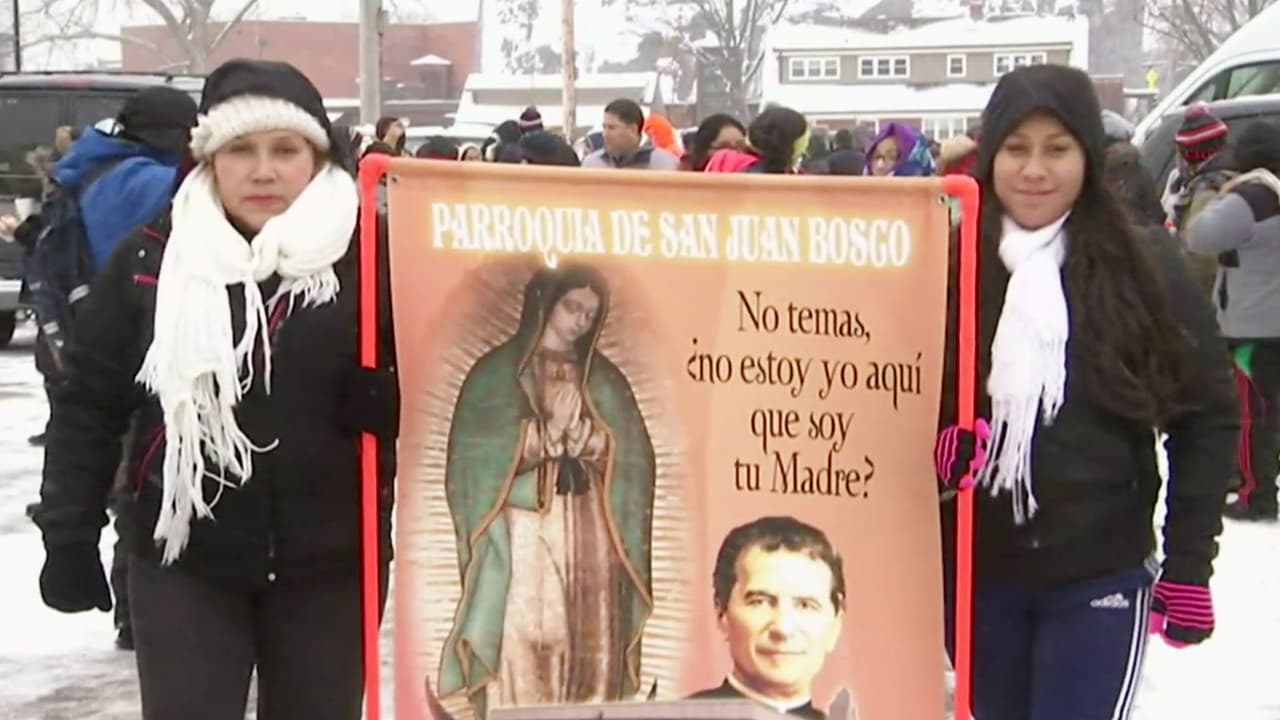 Feligreses de Chicago desafiaron el frío y la nieve para ver a la virgen de Guadalupe en Des Plaines