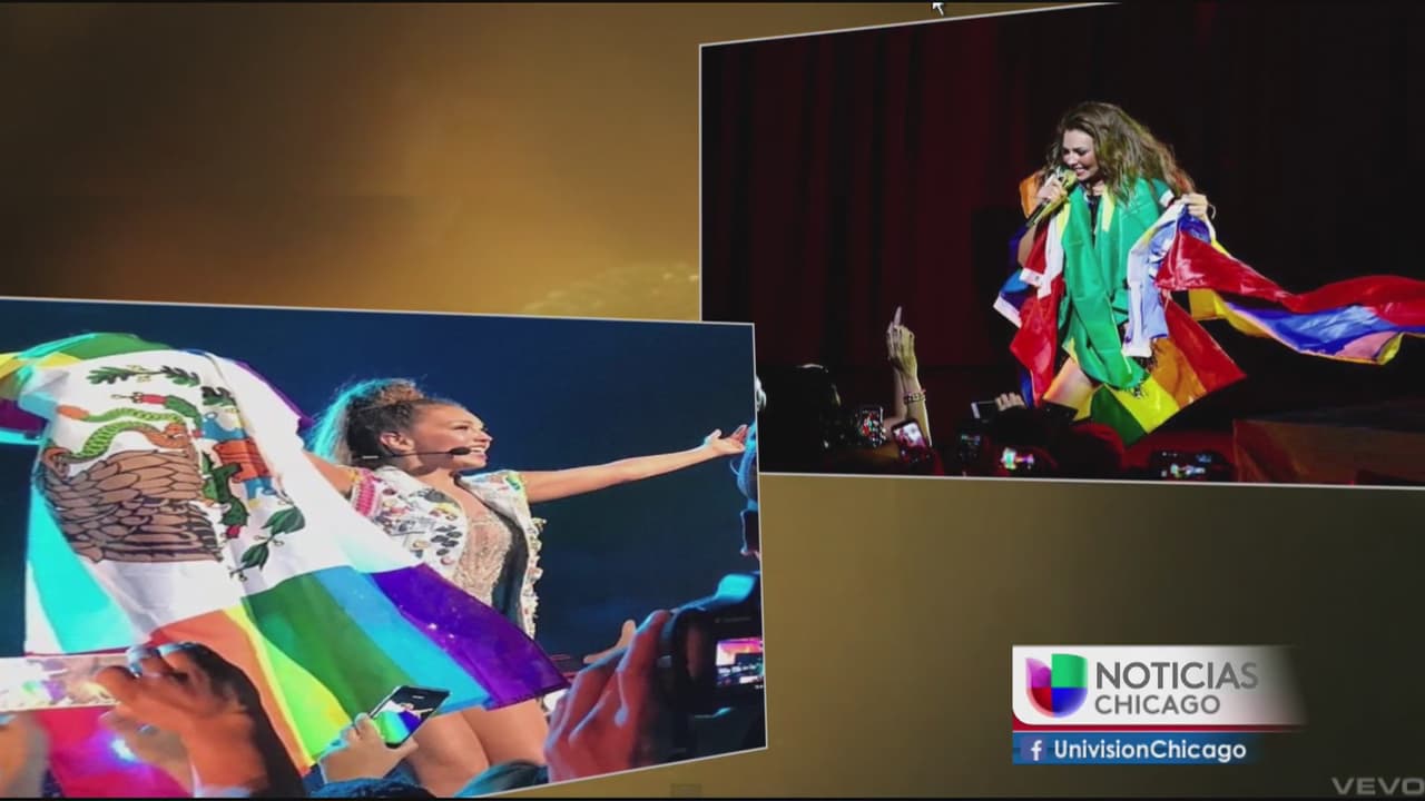 Una fotografía que muestra a la cantante Thalia con la bandera mexicana mezclada con la bandera gay ha provocado mucha polémica.