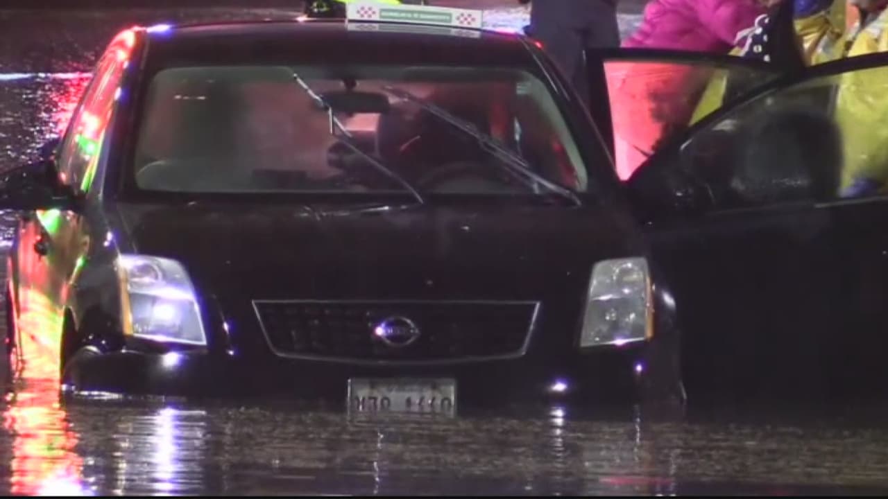 El agua subió por lo menos dos pies y medio, por lo que algunos conductores quedaron atrapados en sus vehículos y tuvieron que ser auxiliados. También se presentó una tormenta con granizo.