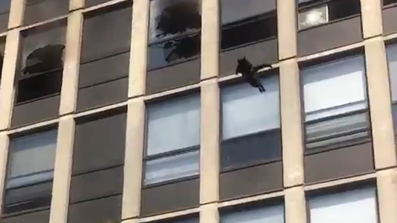 El Departamento de Bomberos de Chicago publicó un video que muestra un gato saltando desde un edificio en llamas el pasado jueves, 13 de mayo.