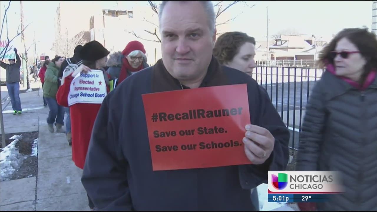 El sindicato de maestros, padres de familia y otros organizaciones participan en protesta porque las escuelas públicas de Chicago no se queden sin fondos.