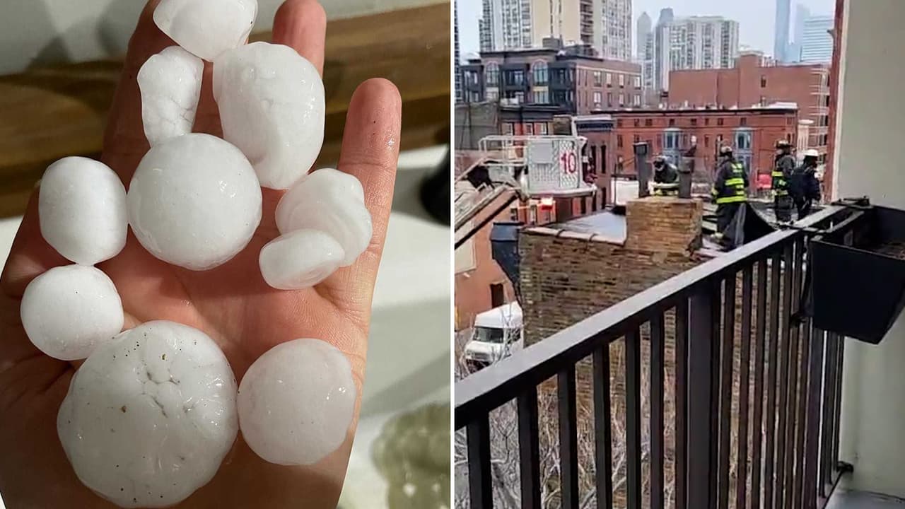 Mientras que granizo del tamaño de una pelota de golf de 1,75 pulgadas de diámetro fue reportado en los condados de Kane y Kendall, en Aurora y Yorkville, respectivamente.