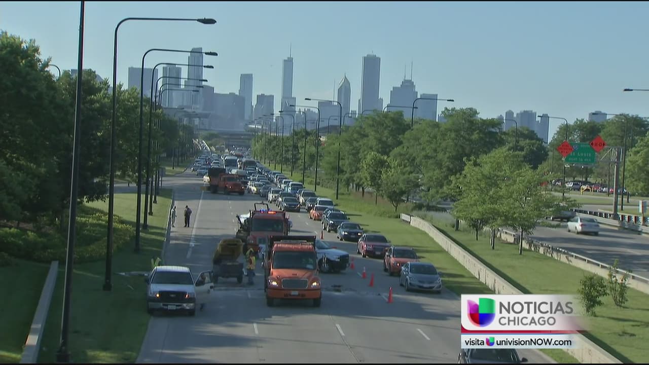 Grieta en carretera genera caos en Chicago