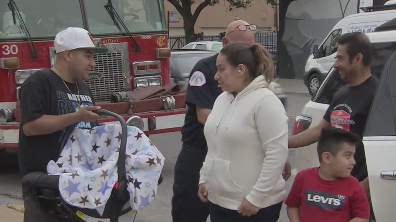 Hispana que dio a luz a su bebé en una estación de bomberos se reúne con los rescatistas que la asistieron en el parto