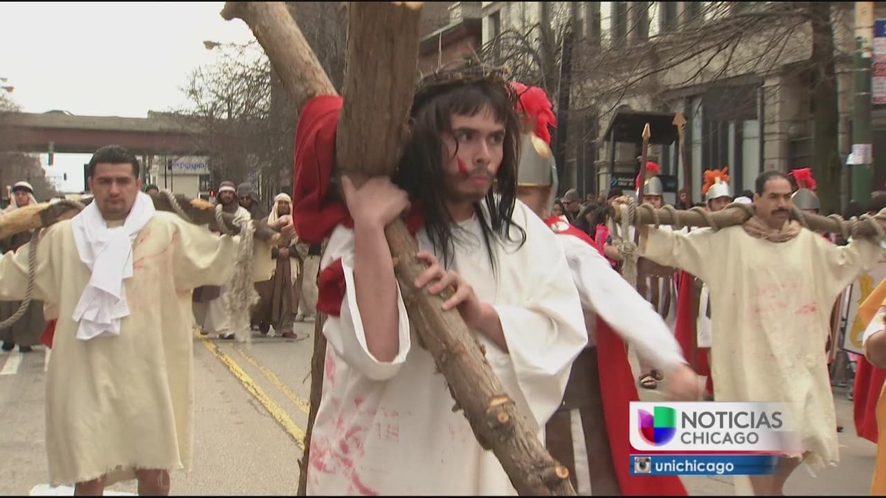 Cientos de personas se reunieron en Pilsen para ver el tradicional vía crucis.