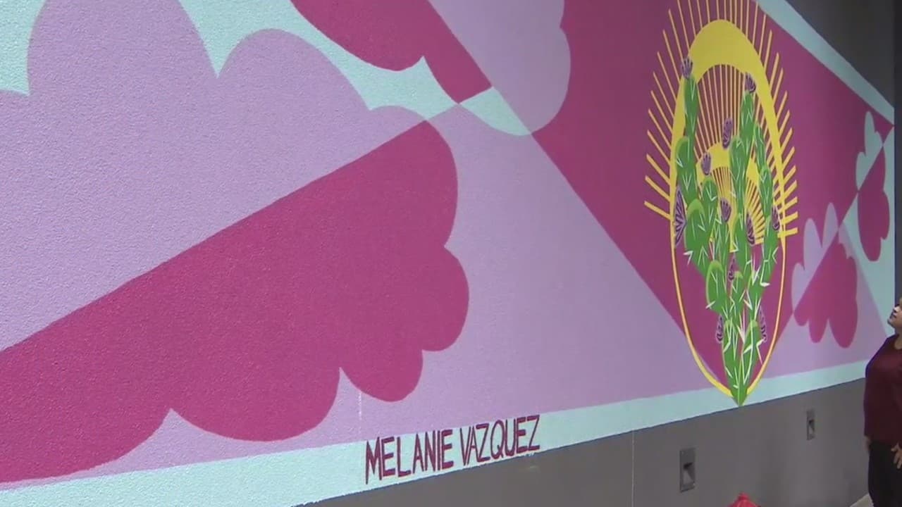 La obra de la artista Melanie Vázquez incluye colores y símbolos representativos de los mexicanos.