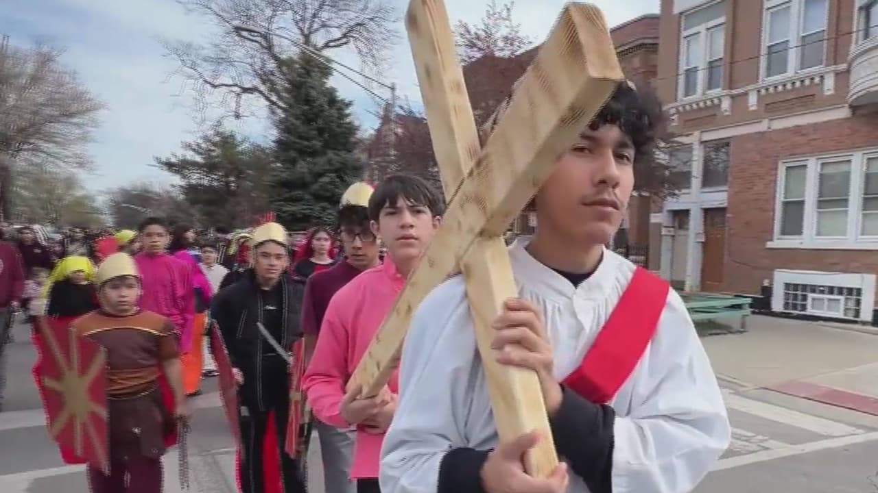 Inician festejos de Semana Santa en La Villita: estudiantes representaron el tradicional viacrucis
