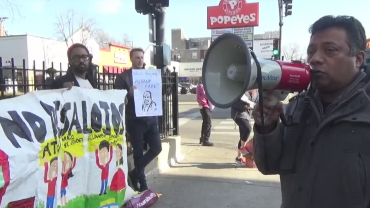 Inquilinos en peligro de desalojo protestan en el vecindario de Albany Park