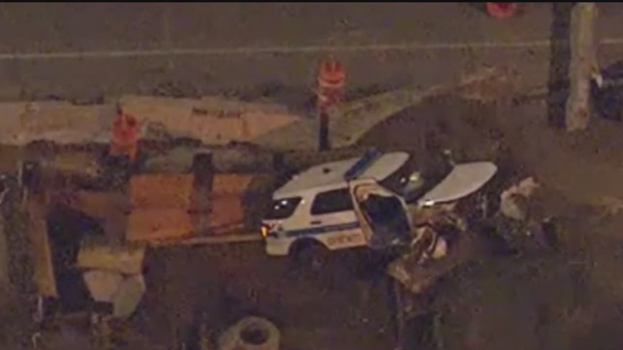 Una SUV del Departamento de Policía de Chicago terminó en el fondo de un pozo de aproximadamente cuatro pies de profundidad. Los lesionados son dos oficiales de 33 y 25 años de edad que sufrieron lesiones en sus brazos piernas y cadera. Los policías fueron hospitalizados y se recuperan satisfactoriamente.