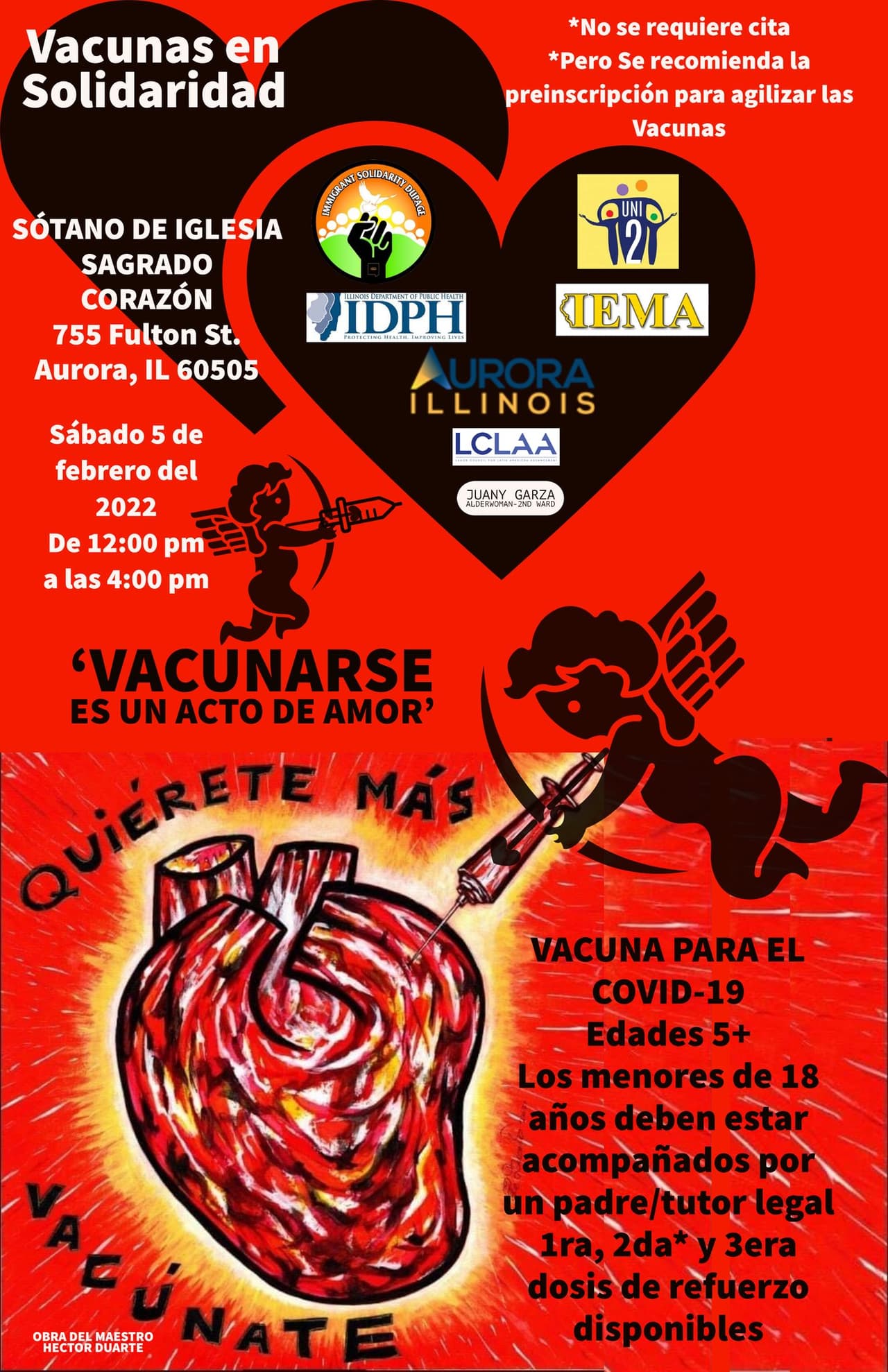 El evento se realizará el próximo sábado 5 de febrero, de 12 a 4 p.m. y fue convocado por representantes de las organizaciones Immigrant Solidarity DuPage y el Departamento de Salud Pública de Illinois y el concejal Juany Garza.