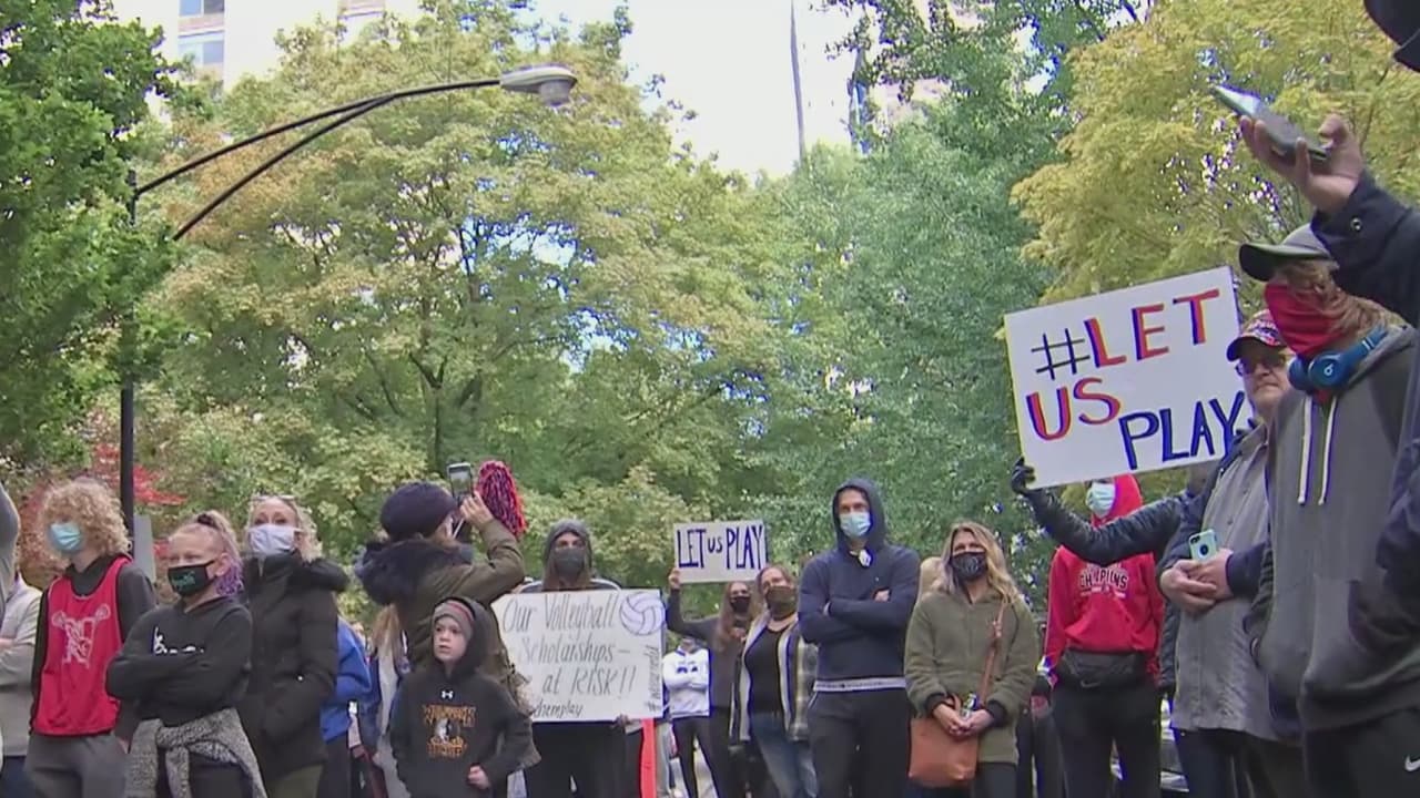 Este domingo, decenas de padres y estudiantes se reunieron para manifestarse en contra de la decisión del gobernador de Illinois de cancelar las actividades deportivas en las secundarias del estado durante la pandemia. Ellos alegan que el deporte no solo les beneficia para su salud física y mental, sino que también les ayuda para obtener becas universitarias.