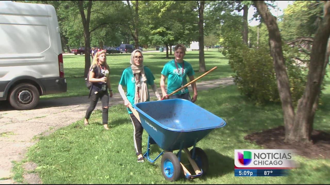 Alrededor de 400 estudiantes de todas partes del mundo llegaron Humboldt Park para realizar mejoras en áreas verdes y como parte de un proyecto de liderazgo y servicio comunitario.