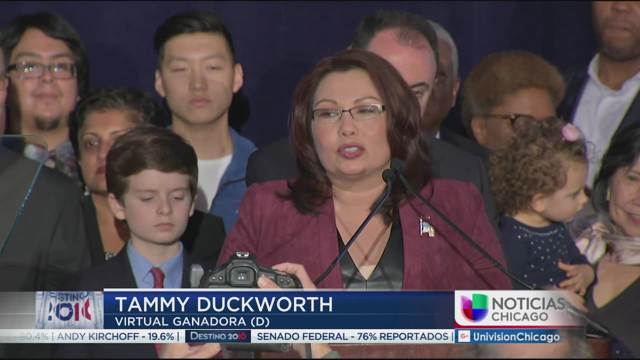 La demócrata Tammy Duckworth celebró su triunfo en la contienda por el senado federal de Illinois y aprovecho para mandar un emotivo mensaje desde su cuartel general en el centro de Chicago.