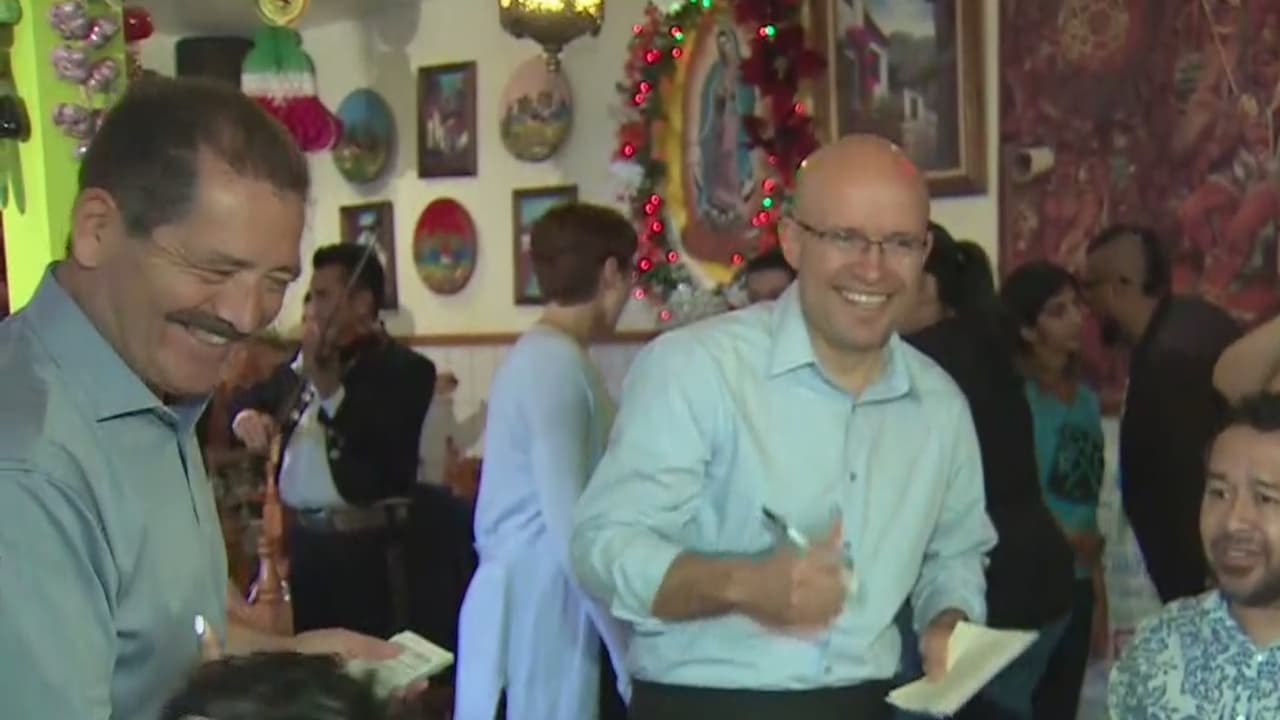El congresista Jesús 'Chuy' García, junto a otros líderes, estuvo en un restaurante de La Villita atendiendo a los clientes como mesero para destacar el trabajo que están realizando estas personas.