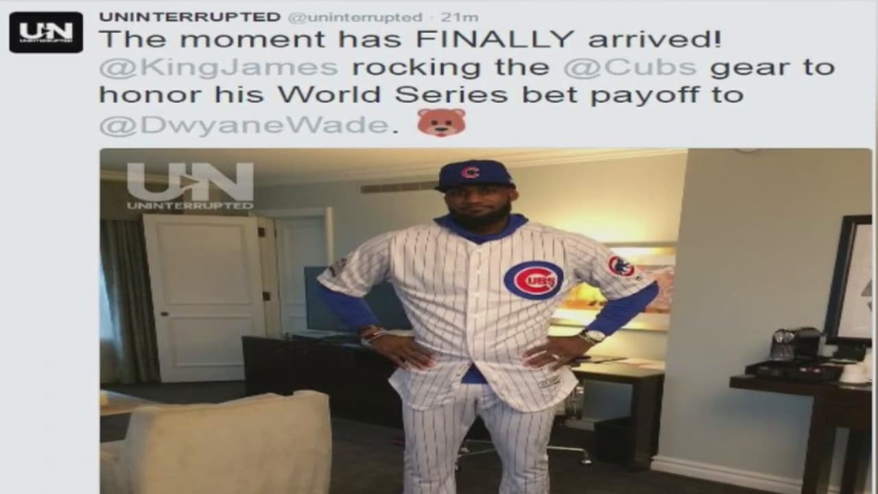 El jugador de baloncesto estadounidense apostó durante la Serie Mundial con Dwayne Wade, del equipo Chicago Bulls, que quien perdiera tendría que usar el uniforme del equipo de béisbol que ganará el Clásico de Otoño.