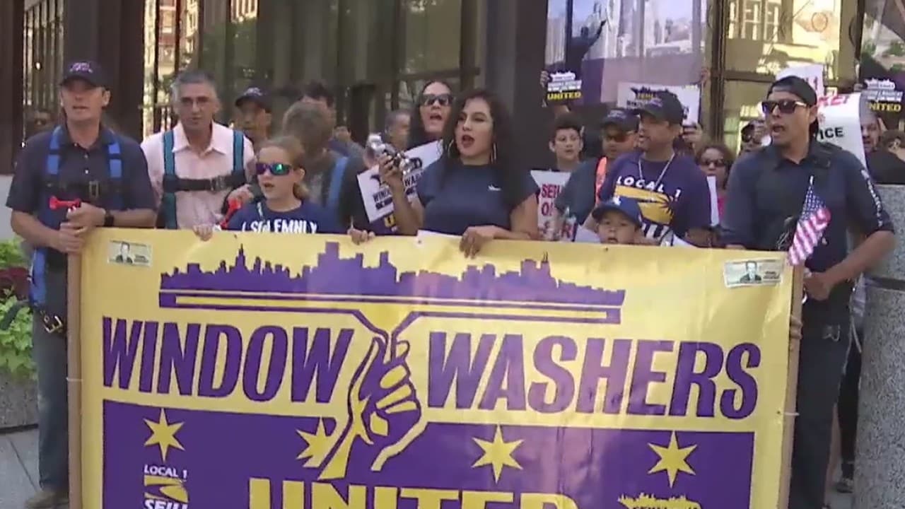 Limpiadores de ventanas de rascacielos marchan en Chicago para pedir mejores salarios