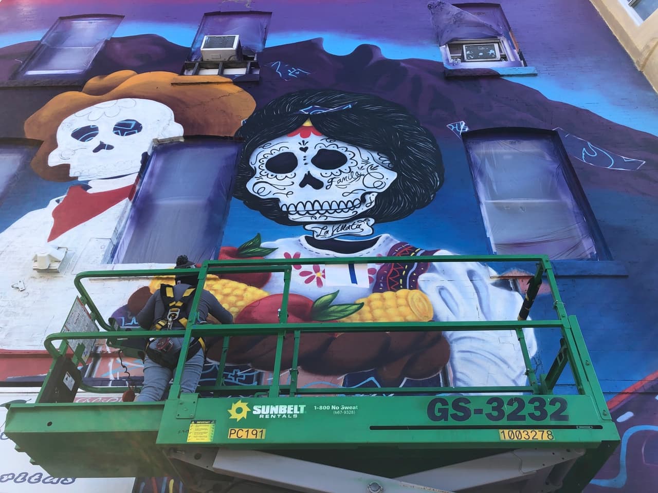 Pintan imponente mural que celebra el Día de Los Muertos en la Villita
