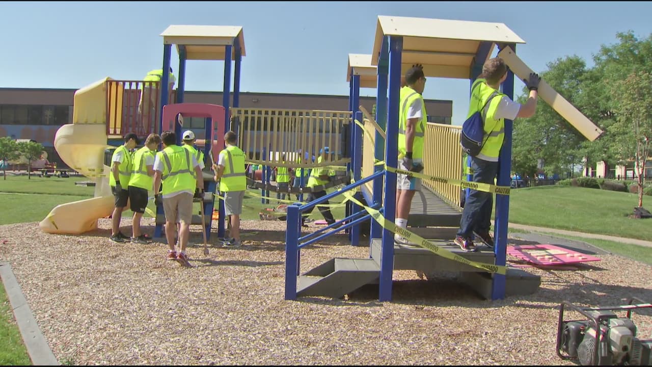 El equipo, junto a la organización El Valor, se unieron para modernizar un patio de recreo que beneficiará a los niños de South Chicago.