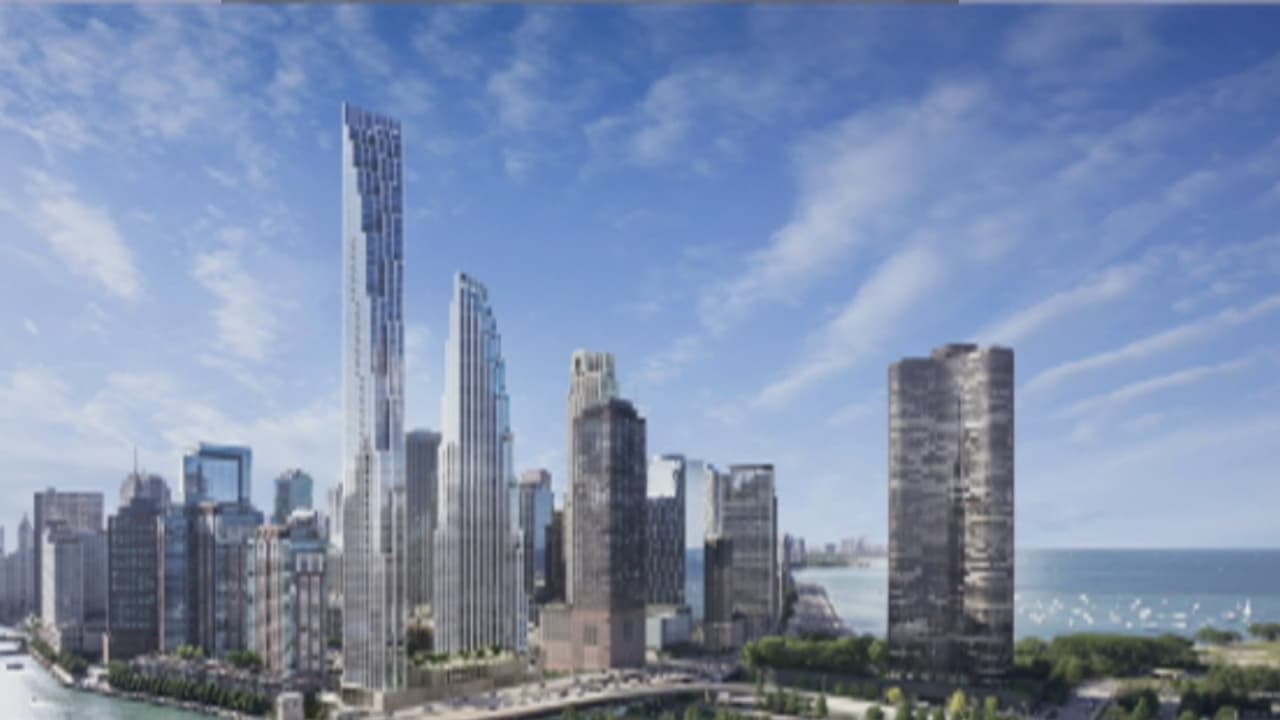 La empresa Related Midwest propone estas dos altas torres de siluetas tipo cascada que tendrían un hotel, apartamentos y estacionamientos.