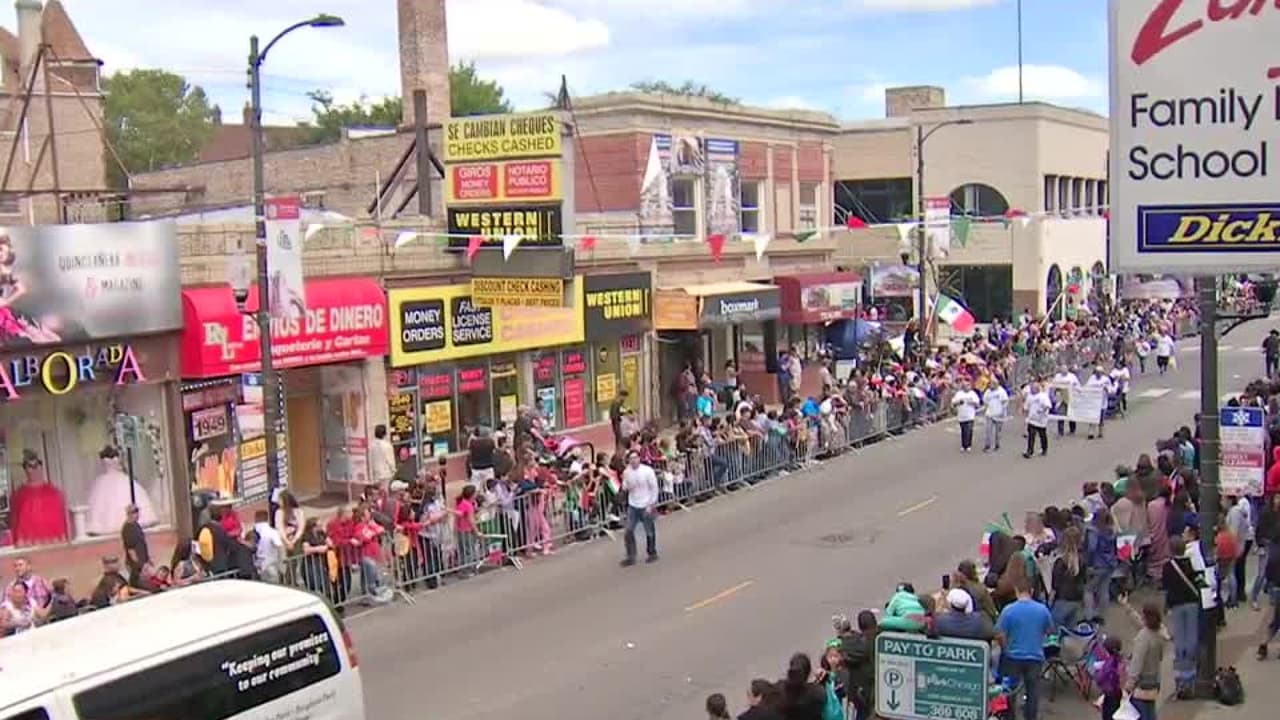 La conmemoración se realizó en el barrio de La Villita y tuvo gran acogida por parte de la comunidad. Los coloridos contingentes pasaron por el famoso arco del barrio y todos fueron aplaudidos por la multitud. La carroza de Univision Chicago también se unió a la celebración de las Fiestas Patrias por la calle 26.
