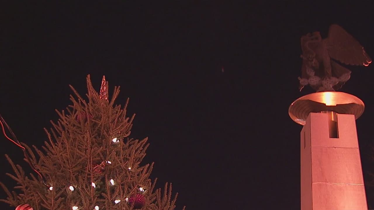 Luces del árbol de Navidad de la Plaza Tenochtitlan en Pilsen se encendieron pese al invierno