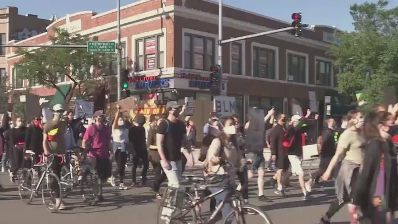 Madres acuden con sus hijos a una protesta por la justicia y la igualdad en Wrigleyville