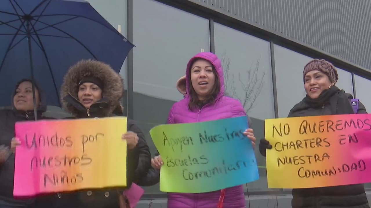 Madres de familia protestan en contra de los planes de expansión de una escuela charter en Chicago