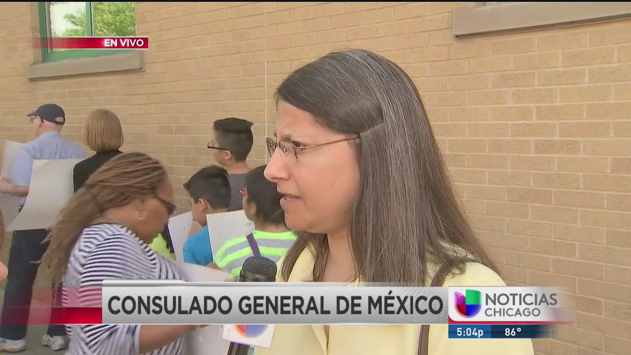 Miembros del sindicato de maestros de Chicago se manifestaron ante el consulado general de México para mostrar su rechazo ante el despido de más de 3 mil maestros del CNTE por irse a huelga.