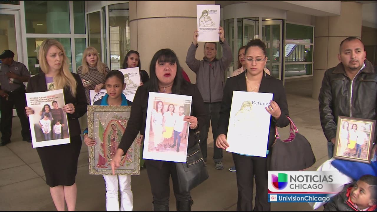 Un grupo de manifestantes mostró su apoyo a las mujeres migrantes víctimas de violencia que están detenidas en Texas.