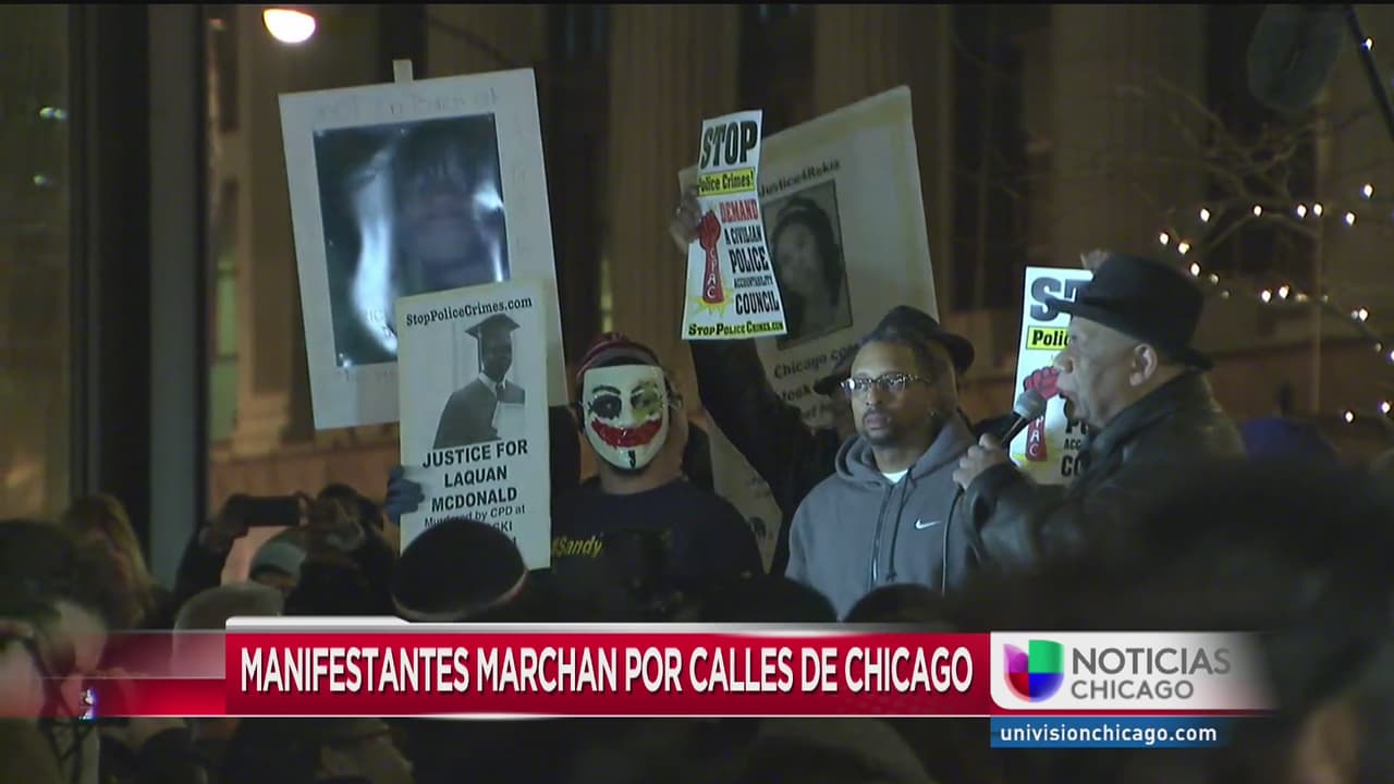 Cientos de personas protestan por el caso Laquan McDonald y el abuso policial en Chicago.