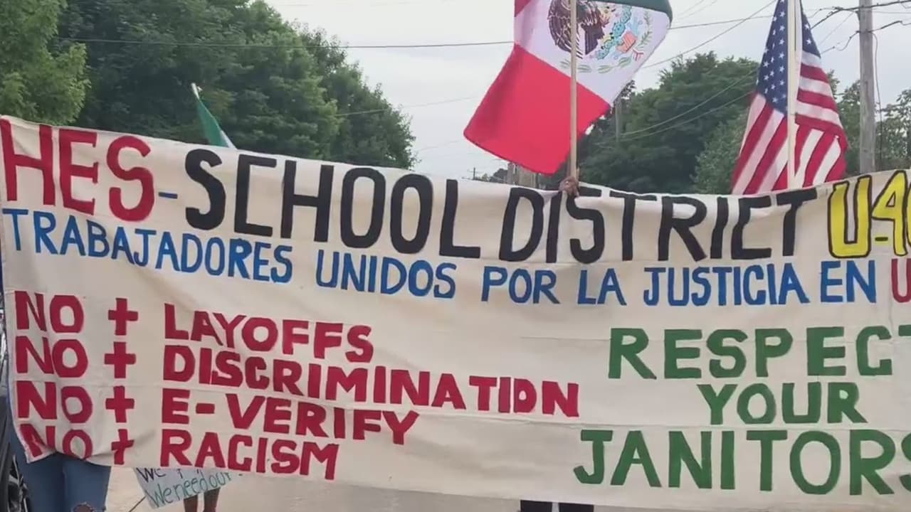 Cientos de conserjes se unieron para marchar, desde la sede del Distrito Escolar U-46 hasta el ayuntamiento de Elgin, y pedirle al alcalde Dave Kaptain que intervenga para que la empresa HES Facilities Management no implemente el programa E.Verify. Según los manifestantes, de utilizarse, muchos se quedarían sin trabajo, pues este sistema revisa el estatus migratorio del aspirante.