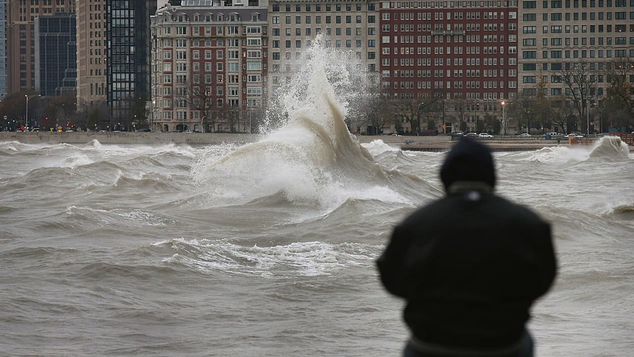 Los fuertes vientos del norte al noreste con ráfagas de 45 a 50 mph continuarán formando olas de 15 a 20 pies a lo largo de la costa de Illinois e Indiana Lake Michigan, causando erosión e inundaciones considerables en la orilla del lago: aléjese de estas áreas, si es posible