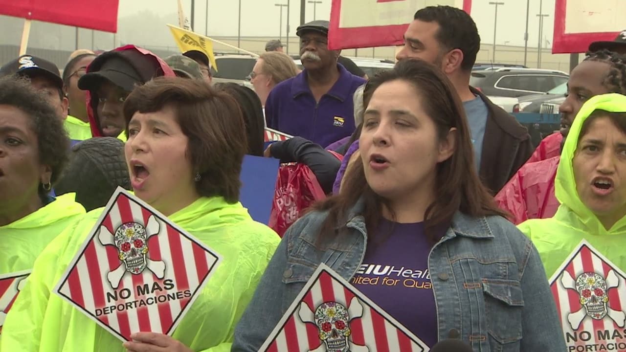 Decenas de residentes y miembros de distintos sindicatos y organizaciones se dieron cita en el Aeropuerto Internacional Gary/Chicago. Cada viernes un avión con inmigrantes deportados sale con destino a México.