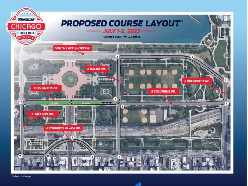 Por primera vez en la historia, llegará a las calles de Chicago durante el fin de semana del 1 y 2 de julio del 2023 una carrera de la NASCAR. Las calles del centro de la ciudad se convertirán en el circuito de carreras de Cup Series.