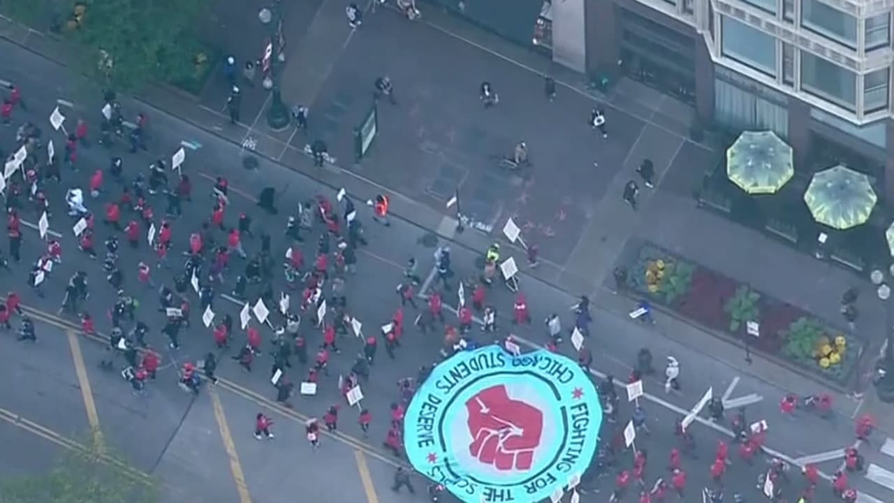 Cerca de mil personas marcharon la tarde del pasado lunes luego de que las charlas entre la ciudad y los maestros concluyeran sin acuerdos. Jesse Sharkey, presidente de Chicago Teachers Union (CTU), aseguró que, aunque han tenido algunos avances, aún faltan compromisos por parte de la alcaldesa Lori Lightfoot.