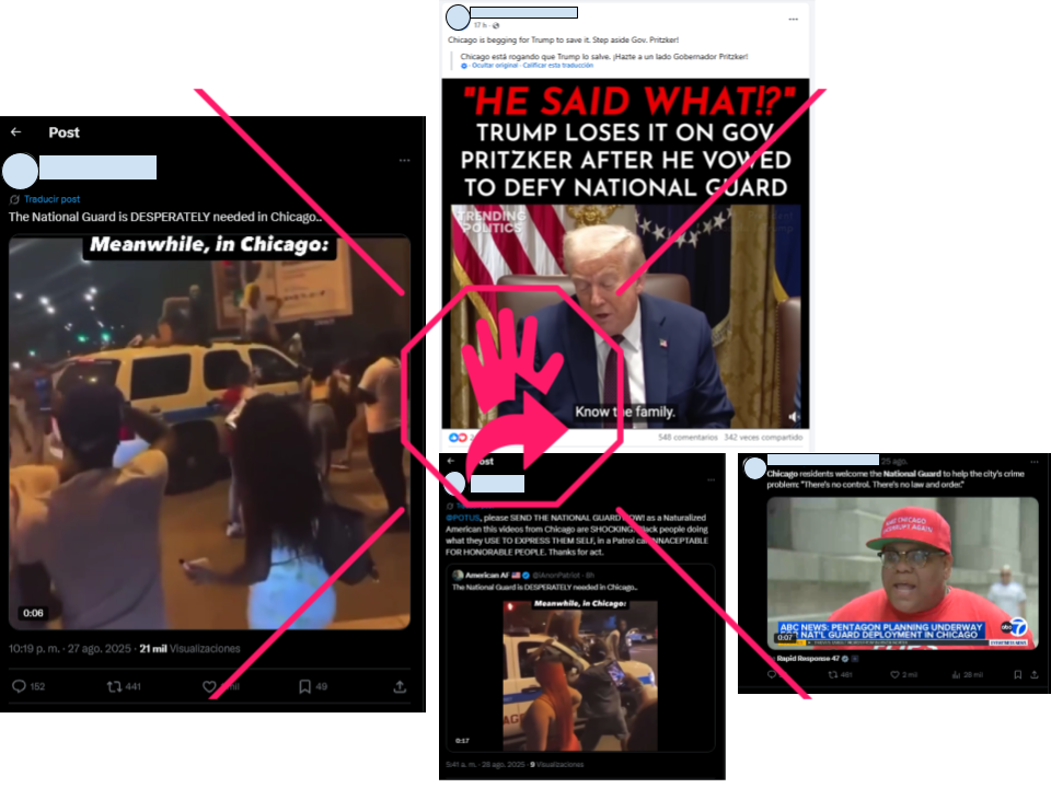 En las redes sociales se han viralizado publicaciones de usuarios que defienden la llegada de la Guardia Nacional a la ciudad como propone el presidente Trump, utilizando videos y afirmaciones fuera de contexto y datos imprecisos.