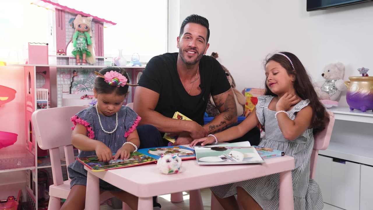Chef Yisus celebra el Día Internacional de la Alfabetización junto a sus dos hijas.