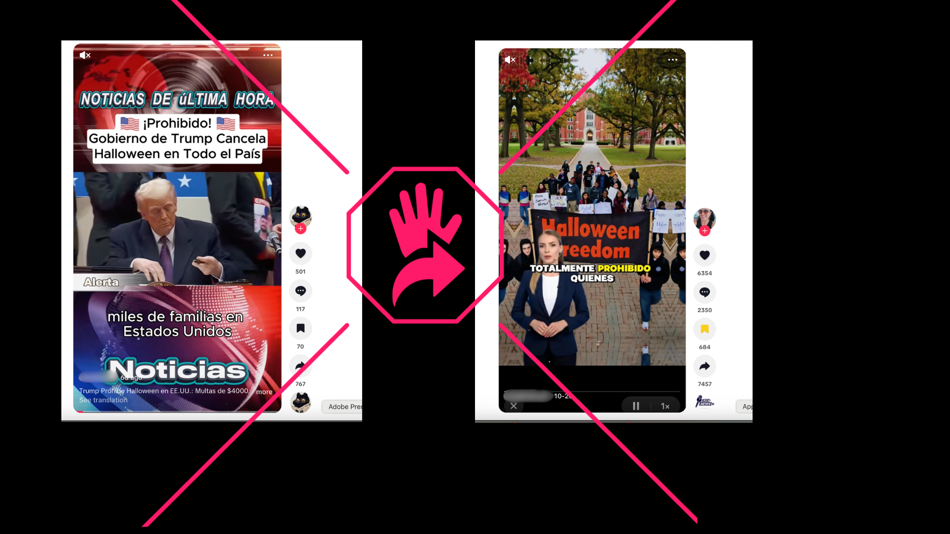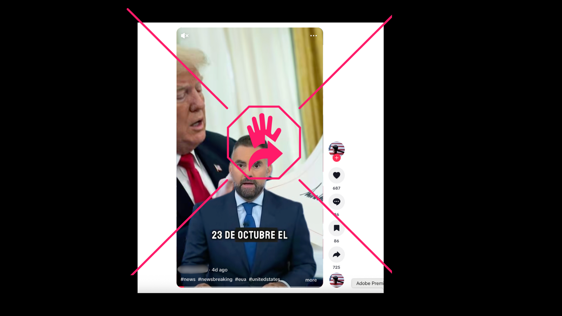 En el video aparece una imagen del periodista Enrique Acevedo, presentador del noticiero En Punto de N+ (división de TelevisaUnivision), supuestamente reportando sobre este decreto. El post menciona que la prohibición incluye el uso de “disfraces, fiestas, decoraciones” y también el tradicional “truco o trato”. Publicaciones similares se han difundido también en otras cuentas de TikTok.