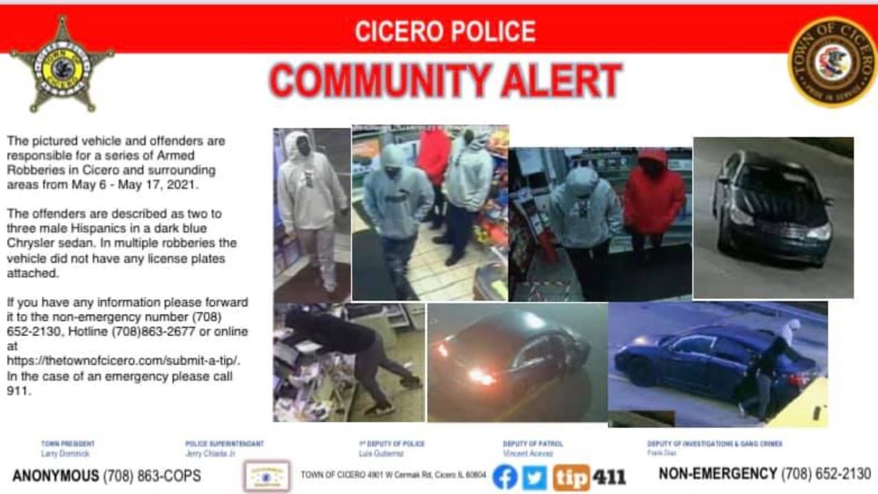 Video Policía de Cicero alerta a la comunidad sobre una ola de robos a mano armada