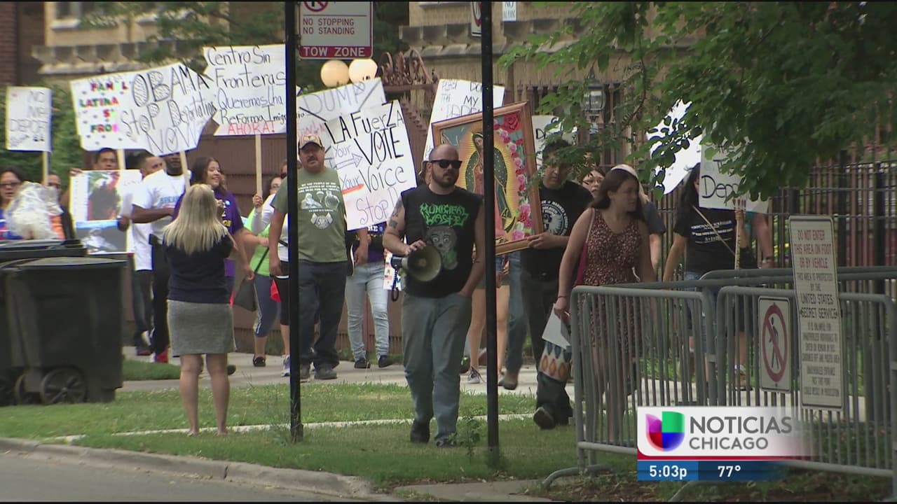 Miembros de la organización familia latina unida se manifestó a las afueras de la casa de Barack Obama en Chicago para exigir el alto a las deportaciones de veteranos de guerra.