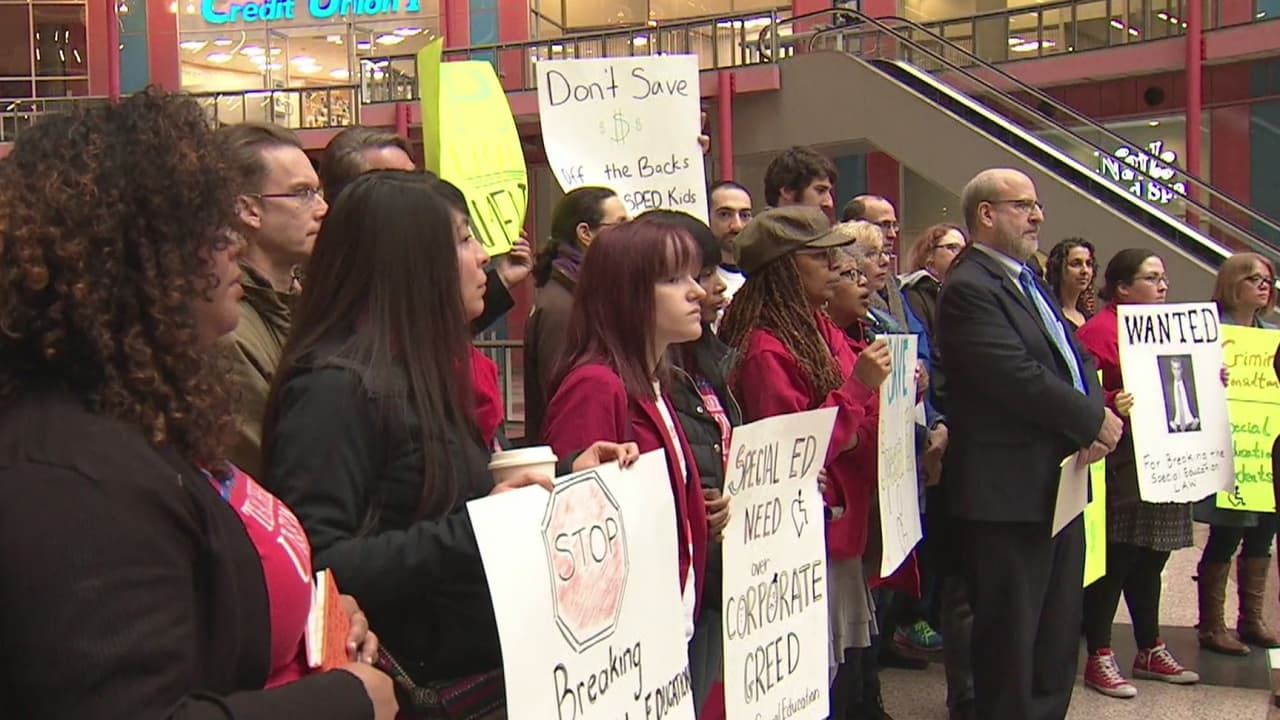 Padres de familia y maestros realizaron una protesta exigiendo que el estado intervenga al Departamento de Escuelas Públicas de Chicago por supuestas irregularidades en el presupuesto para la educación de los menores con discapacidades. Aseguran que CPS está atentando contra el proceso de aprendizaje de estos menores.