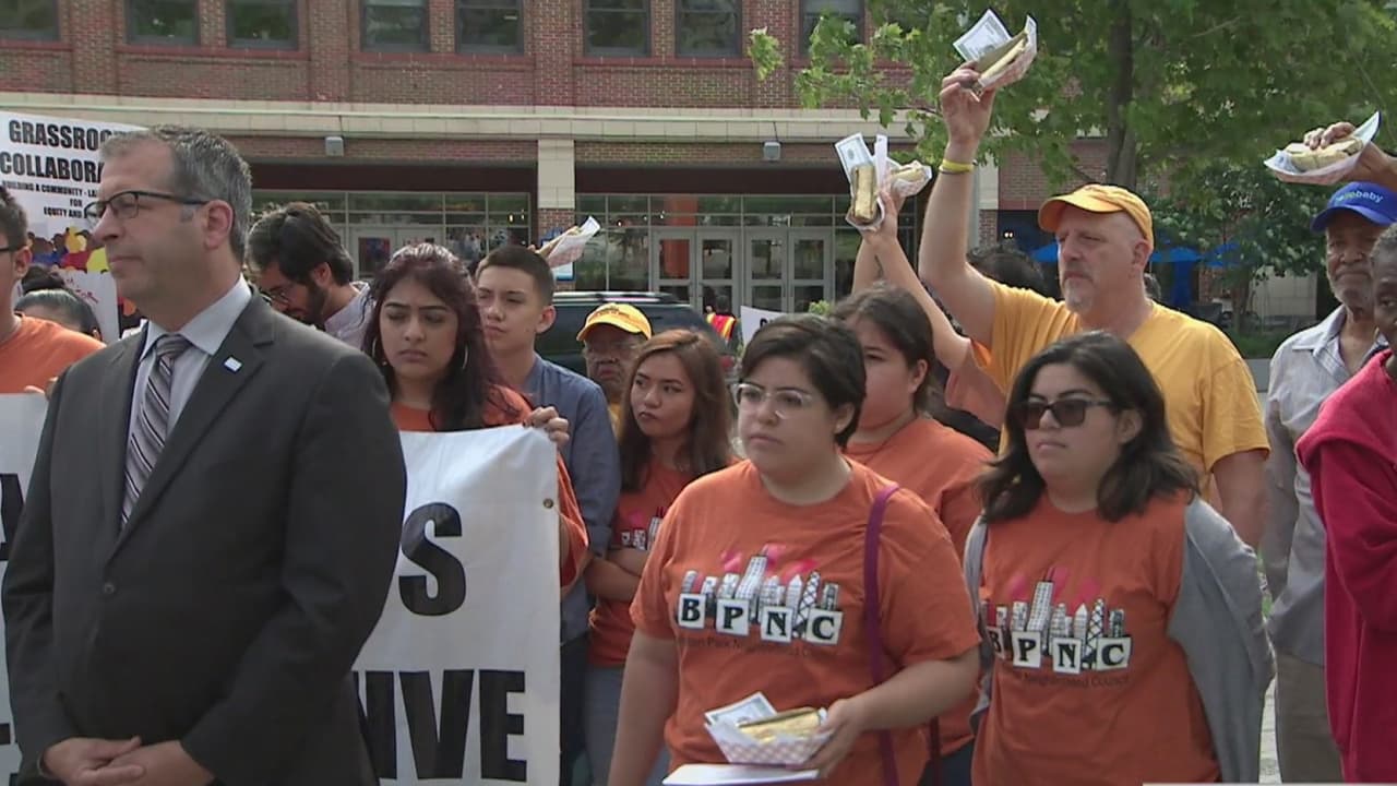 Concejales y líderes comunitarios protestan en Navy Pier después de que Better Government Association y Crain's Chicago Business publicaran una investigación sobre la utilización de 55 millones de dólares de los fondos para infraestructura durante la administración de Rahm Emanuel. Los manifestantes dicen que los recursos se debieron invertir en sectores como la educación y exigen que los devuelvan.