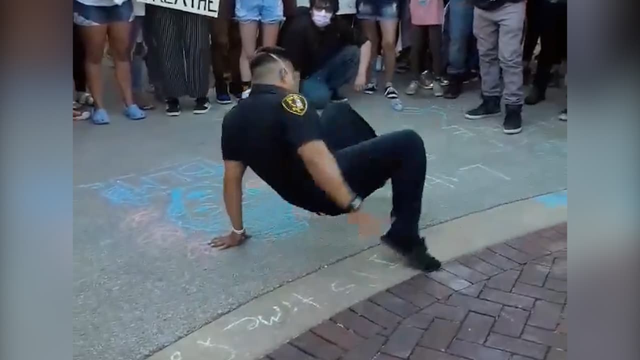 Una protesta pacífica contra la brutalidad policial y el racismo en la ciudad de Elgin, en el condado de Cook en Chicago, terminó el viernes en una reto de baile entre un oficial de policía y un joven bailarín.