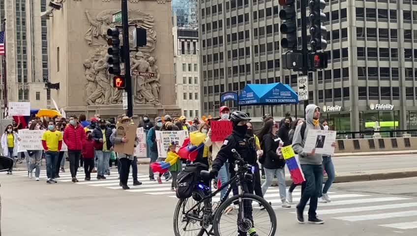 Comunidades de Chicago se reunieron el 8 de mayo para protestar contra los actos de violencia en Colombia. Desde el 28 de abril, en las calles del país sudamericano, ciudadanos tomaron las calles para manifestarse contra la reforma tributaria del presidente Iván Duque.