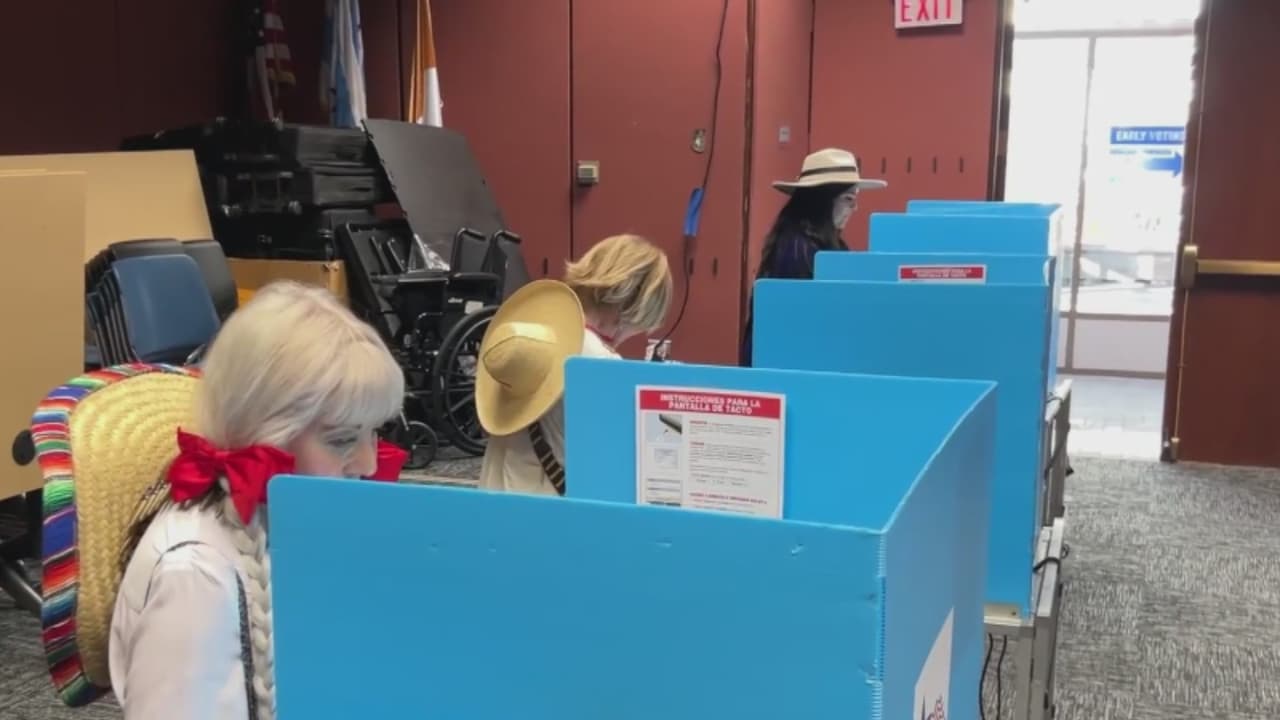 Varias mujeres, vestidas de adelitas, llegaron a la biblioteca Rudy Lozano, en el vecindario de Pilsen, para resaltar la importancia de salir a votar en el periodo de votación temprana para las elecciones generales del 5 de noviembre. “Nosotros podemos cambiar nuestro futuro, debemos utilizar nuestras armas, que son nuestra voz y voto”, dice la pastora y líder comunitaria Ema Lozano.
