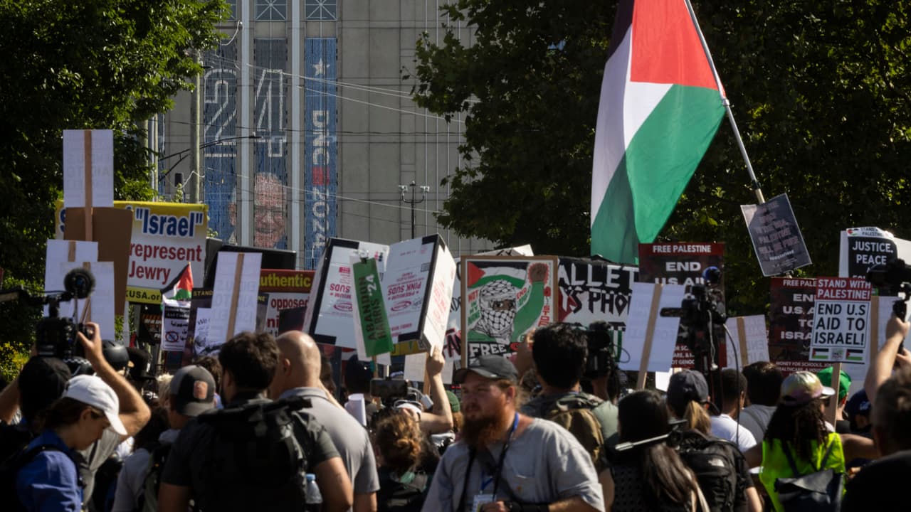 Durante el primer día de la Convención Nacional Demócrata, cerca de 10,000 personas salieron con consignas en relación al derecho al trabajo, salario digno, educación, seguridad, salud, derechos reproductivos de la mujer y sobre todo contra el genocidio palestino. Incluso, algunos manifestantes llegaron hasta el Parque 578, a una cuadra del United Center, e intentaron escalar las barricadas.