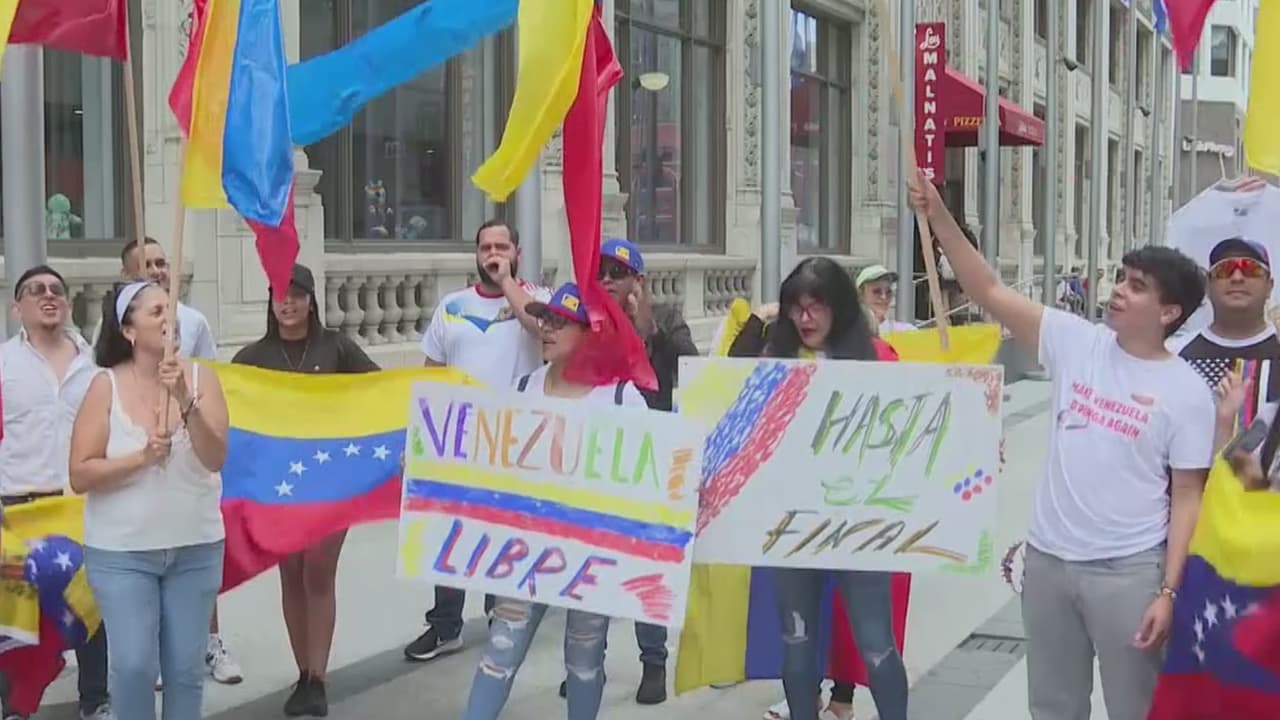 Masiva protesta de venezolanos que no pudieron votar en Chicago para las elecciones presidenciales