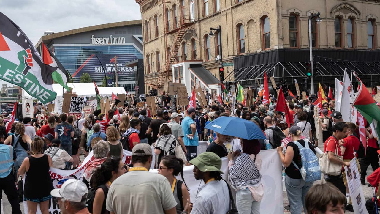 Cientos de manifestantes se dieron cita en el centro de Milwaukee para protestar en contra de varias posturas políticas republicanas relacionadas con el aborto, la situación en Palestina y los derechos reproductivos. Además, hicieron fuertes críticas en contra de Donald Trump.