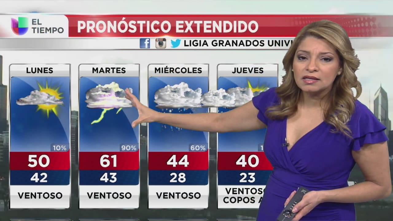 Las temperaturas oscilarán entre 42 y 50 grados Fahrenheit y habrá vientos. El pronóstico para el martes y el miércoles es de tormentas.