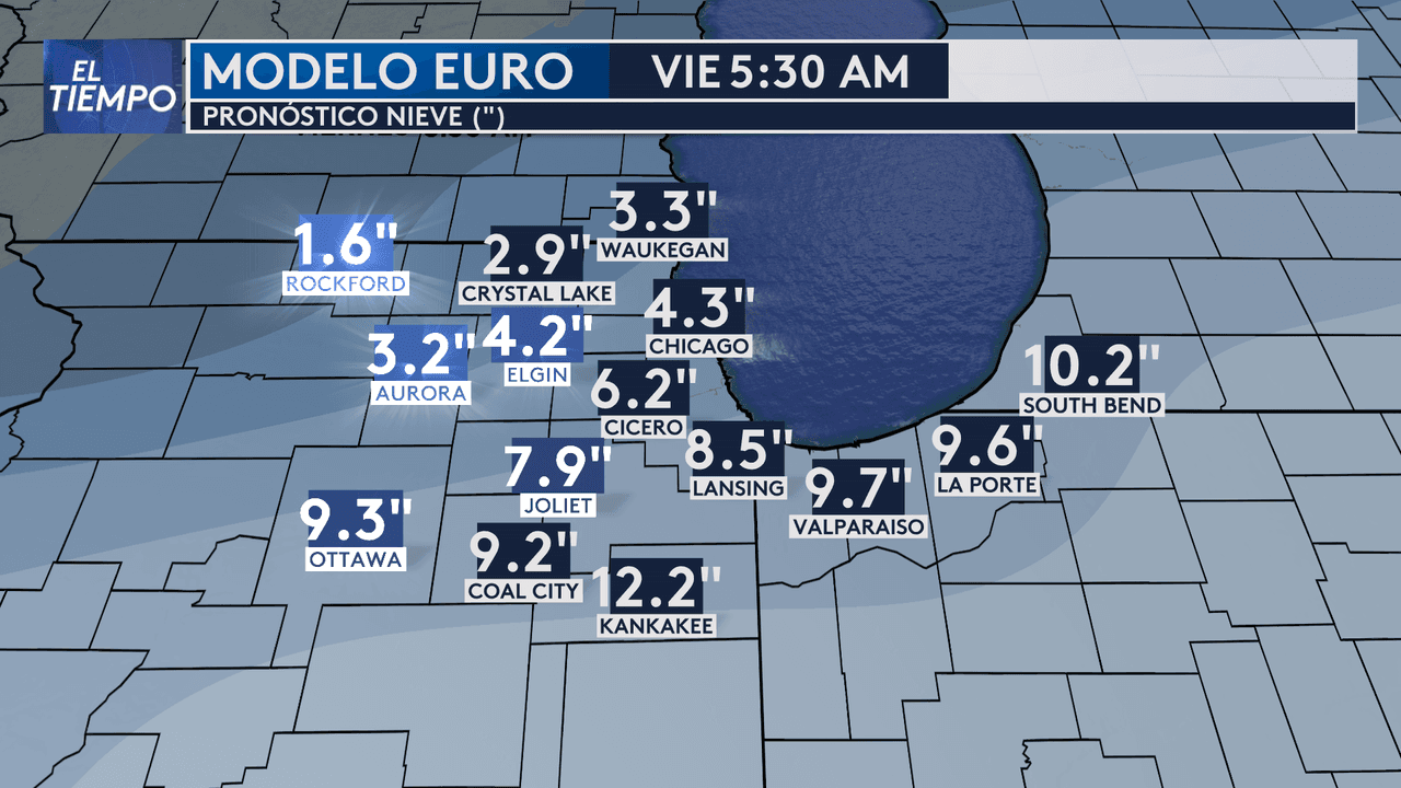 Hasta ahora los modelos meteorológicos coinciden en que localidades al sur de la interestatal 80 serán las que registren mayores totales, incluso más de 1 pie. La ciudad de Chicago y área metropolitana espera entre 4 a 10 pulgadas, mientras condados al noroeste y norte apenas podrían tener entre 1 a 4 pulgadas.